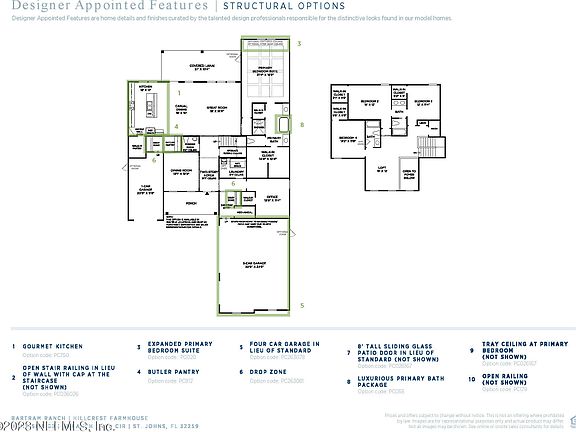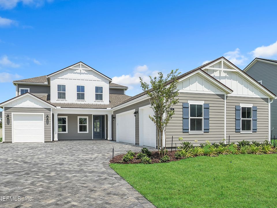 This home currently eligible for a 30 year Fixed, 5.99% Interest Rate Promotion while funds last. Call for details and requirements. MOVE IN READY! FOUR CAR GARAGE! WALK to TOP RATED SJC Hickory Elementary and Swiss Pt Middle School. Bartram HS. Located in the heart of NW SJC. This beautiful two story home features a Gourmet Kitchen, large island, Butler Pantry and Walk-In pantry, large covered lanai, expansive Primary BR, Primary Bath with Freestanding Tub, formal Dining Room, Great RM, STUDY and Half bath, all on the first floor. The 2nd floor features a Loft and 3 bedrooms, two full baths. Private Back Yard. Tankless Water Heater, Pre-plumb for Water Softener, Save money with re-use irrigation and timer. New Amenity Center includes Clubhouse, POOL, FITNESS Center, DOG PARK, Playground