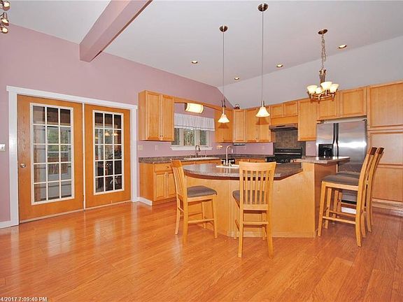 Well maintained 4 bedroom, 2 bath, 2,736 sqft+/- Colonial on 13.3 private acres. Spacious open concept kitchen & living room with 12' ceilings. Granite counters w/oak cabinets & a beautiful island with bar stools. Sunlit dining room with plenty of windows to enjoy the view. Radiant heat throughout! Newer Hardy fiber cement siding. First floor family room with $3,000 movie projector & surround sound system are awesome! Potential in-law suite on first floor. Hill's Mini Barn & playhouse included!
