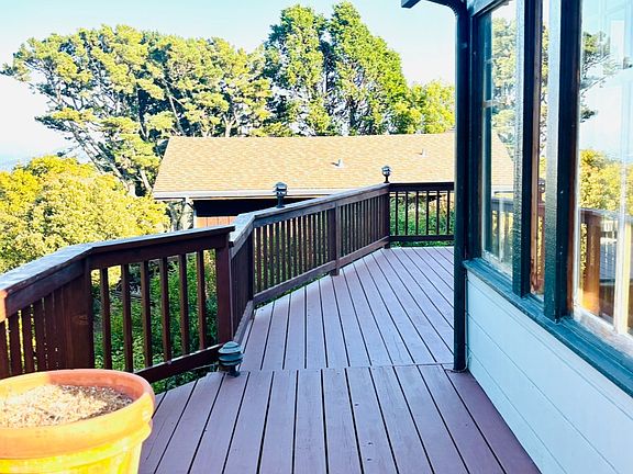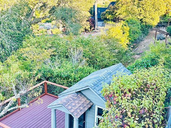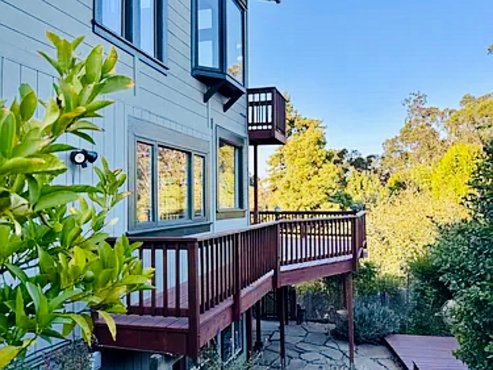 Perched on a serene ridge along a private road in Mill Valley, this three-bedroom mountain home blends rustic charm with unique architectural details. The main residence features a master suite with full bath and walk-in closet, accompanied by two convenient half baths on the main level for flexibility and guest use. Wood and tile floors flow throughout, complemented by custom stained glass windows and a striking redwood staircase leading to the master suite, adding character and warmth. The master suite opens to a sweeping deck, offering a private retreat with expansive views of the southeast over the Bay. The property also includes a fully equipped in-law unit with its own kitchen and bath, providing private access to the expansive backyard. Outdoors, multiple decks and lush garden areas span three levels, including a charming backyard cottage perfect as a private office, studio, or retreat. Gardeners will enjoy the potential of this generous outdoor space. A carport on the side of the property houses a washer and dryer and offers extra storage. Ideal for outdoor enthusiasts, the home sits adjacent to the Golden Gate National Recreation Area and Muir Woods, surrounded by miles of hiking and biking trails. The Muir Woods Park Community Association clubhouse is nearby, adding to the sense of community. A keyed mailbox at the Ridge Avenue parking lot is just steps from the property. This residence offers a distinctive combination of privacy, rustic elegance, and connection to nature, making it a unique Mill Valley retreat with breathtaking views and easy access to hiking, biking, and the outdoors. Perched on a private ridge in Mill Valley, this three-bedroom home combines rustic charm with distinctive architectural details. The main residence features a primary suite with full bath and walk-in closet, plus two half baths on the main level for flexibility and guests. Wood and tile floors flow throughout, accented by custom stained glass windows and a dramatic cedar staircase. Warm cedar woodwork throughout the home adds to its unique character. From the suite, enjoy sweeping views of the Bay to the southeast. A fully equipped in-law unit with its own kitchen and bath offers private access to the backyard. Multiple decks and terraced garden areas span three levels, complemented by a detached cottage ideal for use as a studio or retreat. A separate structure provides a workshop, laundry with utilities, and ample storage. Steps from the Golden Gate National Recreation Area and Muir Woods, the home is surrounded by miles of trails for hiking and biking. The Muir Woods Park Community Association clubhouse enhances the neighborhood's unique sense of community. This residence offers privacy, character, and connection to nature an inviting Mill Valley retreat with breathtaking views and easy access to the outdoors.