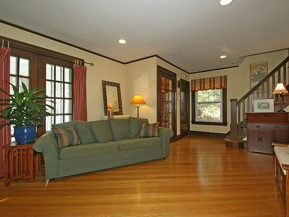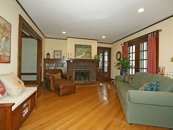Absolutely a charmer! French doors in living room, rocking chair front porch, beamed ceiling in dining room, expansive cooks kitchen, first floor powder room, not to mention original wood moldings and ribbon inlaid hardwood floors. The breakfast area overlooks a spacious deck, the basement is newly finished and has ceramic tiled floors which are great for a playroom. The walk-up attic has a bedroom/office with additional storage. The house has been updated and has many features from its' 1920's origins but is move-in ready for today's living. (Internet 5744679-12/20/2010)