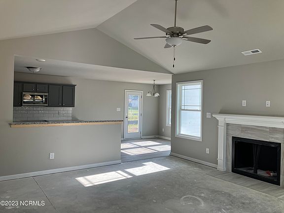 The William~Wonderful 3 br, 2 ba Ranch plan in quiet COUNTRY setting with 3 CAR GARAGE~Kitchen Boasts eat at bar, Granite counter tops and open plan that looks into Family Rm and Dining area~Cozy FP in Family Rm with Gas Logs~Primary Br has Tray ceiling, double vanity in Primary bath, Garden tub and separate shower~2 guest bedrooms (One with Walk-in Closet)~Wrap front porch for relaxing and patio off back~WELCOME HOME