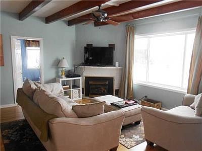 What a spectacular setting! Very private & wooded, high & dry with a beautiful river view. (Very special) Beautifully landscaped, stone fence, 2 Koi ponds with 40-50 fish. The house is charming and in great shape. Modern kitchen, new bath, gleaming hardwoods, fireplace, new roof, & more. You'll love it.