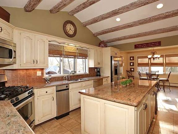 This custom-built Ranch sits on a quiet cul-de-sac in the highly sought-after Hawthorne Heights! Completely private, professionally-landscaped property with an in-ground pool, patios and lush plantings truly make this an entertainer's delight. Double doors open to the entry foyer, welcoming you to a sunken formal living room and adjacent banquet-sized dining room. The gourmet kitchen offers vaulted ceilings, granite counters and a center island, stainless appliances, a breakfast area and French doors to an outside covered patio. A family room, laundry room and rear door to an outdoor deck are just some of the additional perks. The master bedroom suite plus four spacious bedrooms all offer hardwood floors and ample closets. Let the entertaining begin! Downstairs, there's a wet bar, second full kitchen/dining area, full bath, recreation room and an executive office. This versatile home could also serve as a fantastic extended family option, or simply stand on its own. Enjoy all this community has to offer: top rated elementary school, close proximity to highways and NYC bus make this your ideal home.