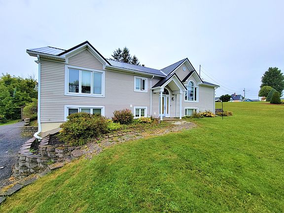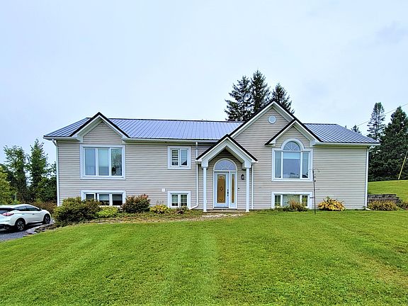 This raised ranch sits high on a hill with views for miles to the south and east. The large 1.63 acre lot offers plenty of open space, along with a fenced in backyard and patio, and a 10x20 storage shed. The house has been beautifully maintained with updated bathrooms and kitchen, hardwood floors, lots of natural light to brighten up the interior, and many added details for style and storage. Three bedrooms and a full bath on the main floor, while the finished basement includes plenty of space with a large family room, an office or hobby room, spacious mud room, and another full bath with laundry. You have the option to heat with oil or coal, all systems updated within the last 10 years, and a newer metal roof to top it off.