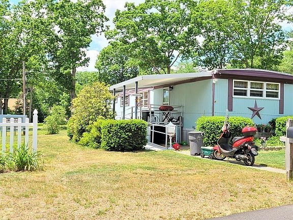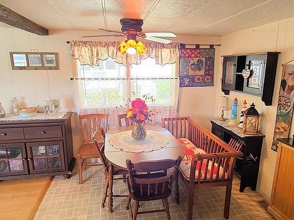 Opportunity for inexpensive living in this 2 bedroom, 1 bath mobile home located in the Brookside Mobile Home Park which features the lowest park rent around! Inside you'll find an open concept living room and dining room combo, kitchen with tile backsplash and laundry area, full bathroom and two bedrooms. All new replacement windows throughout. Nothing needed, this home is completely move-in ready!