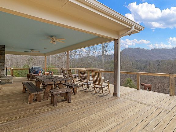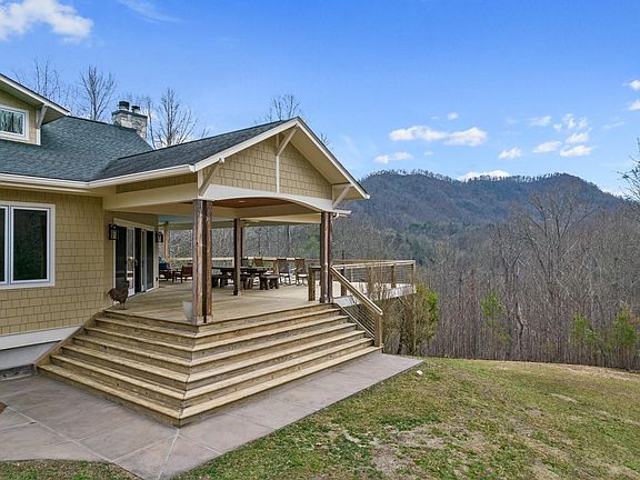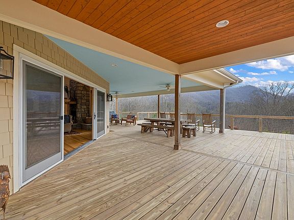 Take an easy ride down the Sandy Mush Valley amongst grassy farmland and blue ridge vistas to this private and peaceful mountain getaway where you can soak your cares away. The colorful sky backdrops the spectacular mountain vistas from the wide decks bathed by summer trees. As the 2014 Gold Craftsmanship Award Parade of Homes Winner, attention to detail abounds, creating the ideal retreat just 30 minutes to downtown Asheville. Nestled on 10+ acres, this beauty is the perfect entertainment home, featuring indoor and outdoor wood burning fireplaces wrapped in Tennessee flagstone and hand-crafted mantle harvested from native red oak. Cherry built-ins, honed granite kitchen countertops, expansive casement windows with incredible natural sunlight, portrait lighting, outdoor shower, custom Carolina closets, infrared light in primary shower, outdoor speakers, 800 SF bunker under the carport and workshop. Red barn down by Sandy Mush Creek conveys. Multiple building sites. No drive-by please.