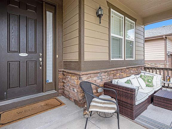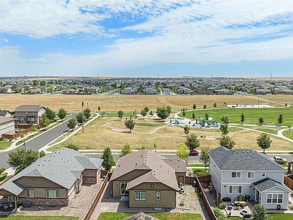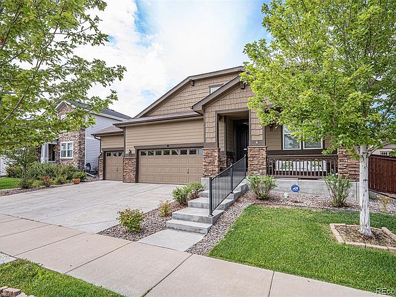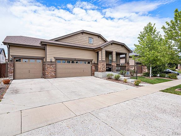 A rare opportunity to call this immaculately maintained, model quality home...yours! Perfectly perched on one of the most desirable lots in the Traditions neighborhood of Aurora, Colorado. This spectacular home is loaded with fine features and quality upgrades, and is across the street from a huge neighborhood park where you can walk the dog, play with the kids, or just enjoy the open space. As you arrive at this stunning home you will love the Craftsman inspired elevation with a beautiful combination of stone and wood siding, an inviting front porch, and a huge 3 car attached garage. Upon entry you will find a spacious open floor plan with soaring ceilings, extended wide plank wood grained flooring, and so much more! The large kitchen is amazing and a Chef's dream with extended Granite counters with a barstool overhang, beautiful wood cabinets, pantry, and a separate dining space that can be re-imagined into an in-home office. The large family room features a stone faced corner gas fireplace, large windows that flood the space with natural light, and easy access to the outdoor space. The main level primary suite is a relaxful space where you can enjoy a private en suite, and a huge walk-in closet. The main floor is complete with two additional large bedrooms and a full bathroom. The partially finished basement extends the amazing living space with a huge recreation area and a full bathroom. There is plenty of unfinished area where an additional bedroom, theater, or extended storage space can be created and enjoyed. The large fully fenced and landscaped yard awaits for all of your outdoor entertainment needs. Other features include upgraded shutters on all windows, central air conditioning, and much more! Traditions is perfectly located close to schools, E470 for an easy commute to DIA, DTC, and Denver. Enjoy the community pool and beautifully maintained parks and playground. This home is a perfect 10! New roof and paint to be completed prior to closing!