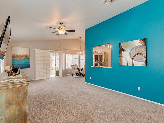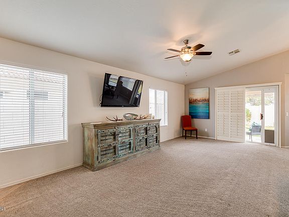 Fantastic 3 bedroom 2 bath home in the Popular Springs Community of Chandler. Beautiful lakes, lush parks, and a great Community Pool and Racquet club are some of the benefits of this gorgeous community. The home has a Great room layout with soaring vaulted ceilings, newer carpet, wood tile floors & has a Remodeled and Updated kitchen featuring gorgeous white kitchen cabinets , slab granite, & stainless steel appliances with a sleek white iron apron front sink. Home has an oversized master bedroom with additional 2 spacious bedrooms. Both bathrooms have updated features such as granite counters and upgraded lighting. Home has a spacious 2 car garage with built in shelves & the yard has lush grass with North facing covered patio. Come see this great home. All furniture is also for sale.