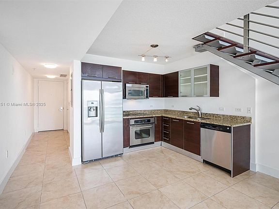Beautiful two-story loft located on the 17th floor at Brickell on the River. Expansive double-height ceilings with floor-to-ceiling windows create a bright and open space with incredible city views day and night. 1 bed/1.5 bath floorplan with living, dining, kitchen, and half bath on first floor. The second floor features the primary bedroom, bath, and washer & dryer. Amenities include two pools, fitness center, spa, valet, and more. Located in the heart of Brickell just steps away from world-class shopping, dining, and entertainment