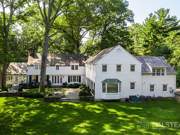 Gracious colonial beautifully sited on 2 manicured acres with mature trees and sweeping, level grounds on sought after cul de sac convenient to town. Entertain in style with stately formal dining room and easy access to the expansive flagstone terrace for large outside gatherings. The heart of the house is the professionally appointed Christopher Peacock designed chef's kitchen & sun-filled family room also ideal for entertaining on a grand scale or daily living. Huge center island, fireplace, built-in bookcases. 3 sets of French doors afford a truly relaxed indoor/outdoor lifestyle. Additional amenities include a library, his and her home offices, his and her baths, home gym, game room, screened in porch, raised bed vegetable and flower gardens. Reno. 1996 Addition 2003. Quintessential Darien home in prime area!
