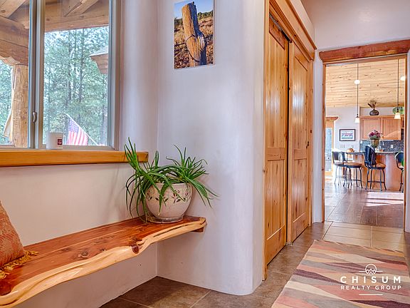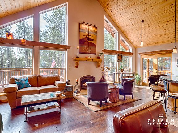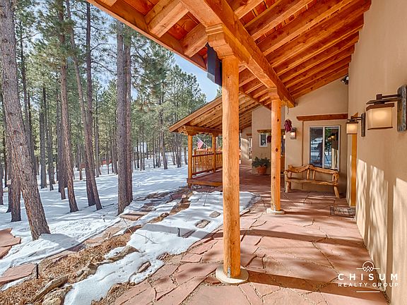 A stunning mix of southwestern charm with mountain cabin flair can be found in this wonderful home in the heart of Angel Fire. The exterior is beautifully landscaped with organically gardened native flora on drip irrigation for beauty with low maintenance. A grand flagstone fireplace pit, large front deck and private courtyard with hot tub and water feature provide diverse outdoor living spaces that can accommodate any season or activity. Inside, you'll find a well designed and maintained home with high end finishes and live edge wood accents throughout. The great room features vaulted tongue and groove wood ceilings, a gas fireplace, rough cut wood headers above all doors and windows and impressive wide plank, hand scraped hickory wood floors. The kitchen features granite countertops with glass tile edging, stainless steel appliances and solid wood cabinets. A large second living room is adjacent to the great room with a large custom built-in desk and another gas fireplace. The master bedroom is on the main floor with a kiva fireplace, vaulted wood ceilings, walk-in closet and an ensuite bath with jetted tub, dual copper sinks and a separate tile shower. The home also features two guest bedrooms, a laundry closet, a full bathroom, level driveway and an oversized two car garage. Finally, this home comes fully furnished and is truly turn-key for the next owners to love. Call us today for a showing!