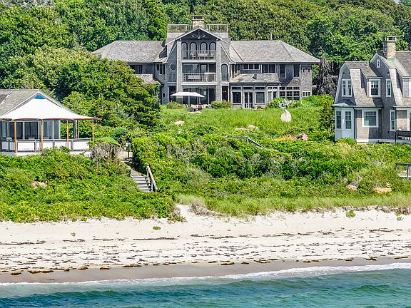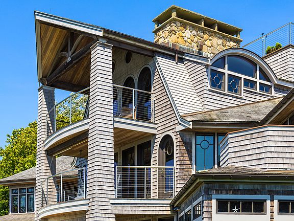 AUCTION BIDDING OPEN: Bidding ends 11/26. Previously Listed $6.995M. Current High Bid $2.5M. Welcome to the Osprey House, an exquisite coastal haven set high above the pristine waters of Buzzards Bay. This architectural masterpiece offers sweeping ocean views from all west-facing rooms, providing a front-row seat to stunning sunsets. Built in 2007 by renowned architect Chris Gully, this home seamlessly blends modern luxury with timeless elegance. A striking central fireplace, towering 20 feet high, anchors the heart of the home, while the gourmet kitchen is a chef's dream, featuring a wood-fired masonry oven, dual workspaces, and top-of-the-line appliances. The home is designed for comfort and convenience, with a central elevator servicing all four levels and a state-of-the-art 17-zone hydro-air system. Outdoor living is just as inviting, with a summer porch perfect for alfresco dining and beach access just steps away. Whether you're hosting elegant gatherings or enjoying a quiet retreat by the sea, Osprey House offers an unparalleled lifestyle in the prestigious Saconesset Hills of West Falmouth. The first floor also includes a well-appointed office and a music room, catering to both work and leisure. The second level is dedicated to relaxation and study, with four luxurious bedroom suites and a separate library complete with a gas fireplace. On the third level, you'll find a stylish bar area and a cozy den with another gas fireplace, ideal for unwinding after a long day. The lower level is an entertainer's paradise, featuring a movie room, wine room, family room, and a half bath. Additional amenities include a three-car detached garage and an attached two-car garage, offering ample parking and storage space. Step out your front door to a sandy beach. Discover the "Osprey House" - where luxury living meets timeless design in a breathtaking coastal setting.
