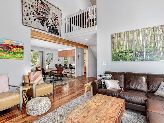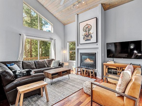 Nestled in the aspens in the heart of Frisco, this 4 bedroom plus loft home is perfect for the local family or second homeowner. Recently updated kitchen and bathrooms, vaulted ceilings, 2 decks, hardwood floors, EV charger in 2 car garage, and built in bunk beds in the 3rd bedroom. A flat and easily accessed property with southern exposure, and just steps away from the bike path, Ten Mile Creek, and Lake Dillon. A very rare find here in Frisco.
