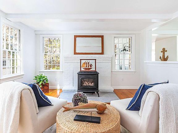 This freshly renovated 2 Bed, 2 Bath Cape is a true gem! Nestled on a spacious level lot & boasting a 2 story Barn, this charming property offers an abundance of features and potential. The heart of the home is the beautiful Screened in Porch, where you can enjoy the tranquil outdoors while being sheltered from the elements. It's the ideal spot for morning coffee, al fresco dining, or simply relaxing w/ a good book. Inside, you'll notice the gleaming hardwood floors that flow through the main living areas & bedrooms. Two Living Rooms provide ample space for entertainment. One of them features a cozy gas fireplace, adding an extra layer of comfort & charm. The bright new Kitchen has been fully updated w/ quartz countertops, new cabinets & appliances, as well as an island to use for extra counter space or dining. Both baths have been updated, all exterior trim & decking has been painted & there is a brand new septic system in the backyard. The unfinished second floor offers endless potential, waiting for your creative touch to transform it into additional living space - the possibilities are endless. With close proximity to Red River Beach, this is not one to miss!