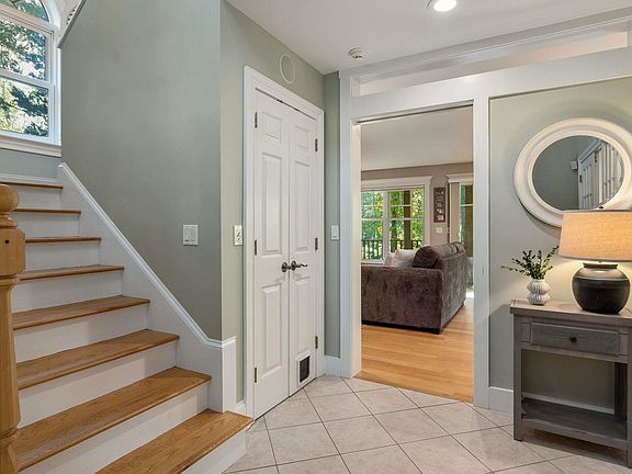 Nestled just off Shore Road, steps away from Perkins Cove, Marginal Way, Ogunquit Village, and sandy Ogunquit Beach, you'll discover the epitome of coastal living. This impeccably designed Shingle-style residence offers three bedrooms and a versatile floorplan, making it an ideal choice for those seeking a second home, investment property, or year-round residence. As you enter, a grand foyer welcomes you with its French doors, leading you into a formal dining room adorned with crown moldings, a separate bar area, and a wine refrigerator. The spacious living room boasts a wood-burning fireplace and rich hardwood floors with intricate inlaid details, flowing onto the covered rear deck. The eat-in kitchen features granite countertops, custom cabinets, and a breakfast bar. Completing this level are a guest bath and laundry. Upstairs, you'll find a spacious primary suite, offering a spa tub, double vanity, walk-in closet, and a cozy sitting area for indulging in a good book or savoring a glass of wine. Two additional guest bedrooms and a full bath, are on this level along with a family room with access to the third-floor great room providing a flexible space for in-home gym, theatre or office. The full basement and two-car attached garage offer generous storage options, both featuring the added luxury of radiant heat. There is ample parking for guests and a charming covered porch welcomes you home. The tree-lined backyard sets the stage for barbecues and summertime entertaining.