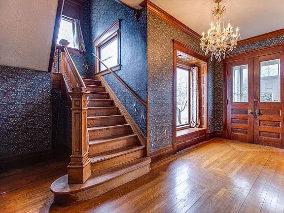 Beautiful and grand historic home in downtown Dundee. This 5 bedroom home oozes character as soon as you walk in the original front double doors. From an oversized and private first floor master suite with sunken tub and walk in shower, to the large chef's kitchen- you'll love the layout and the options this home offers. Gorgeous inlaid hardwood flooring, large rooms with tall ceilings, lead glass windows, private porch, and original moldings create a sense of grandeur throughout. Upstairs you'll find another 4 bedrooms, and a full bathroom, as well as a second kitchen and large attic storage. The private and quiet back yard can be enjoyed from the walk out deck off the kitchen. Don't forget the detached garage. Come and explore this wonderful home!