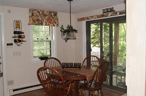 This property is set back down a long windy driveway sits this Great East Sandwich Garrison! Some updates, large bedrooms, VERY PRIVATE setting on nearly an acre. Third floor deck and bonus room potential, wood stove connection, and gas is available in the area.