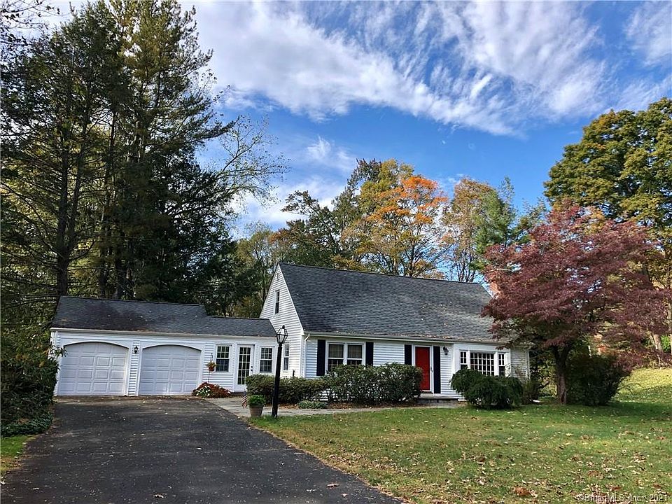 A charming cape with open floor plan flooded with light. Updated kitchen, bath, windows, new oil tank. First floor bedroom with half bath than can be used for a den or office. A sunny breezeway between garage and kitchen. Enjoy your summer day on the screen porch. Double french doors lead to a beautiful and level backyard with private land behind the property. Front to back living room/dinning room with large windows and hardwood floors. Built in shelves surround the fireplace. A great home for entertaining Beautiful springtime blooms on the rhododendrons and blueberry bushes for summer enjoyment. The property is ideal for gardens and has an irrigation system to kept them blooming all summer.