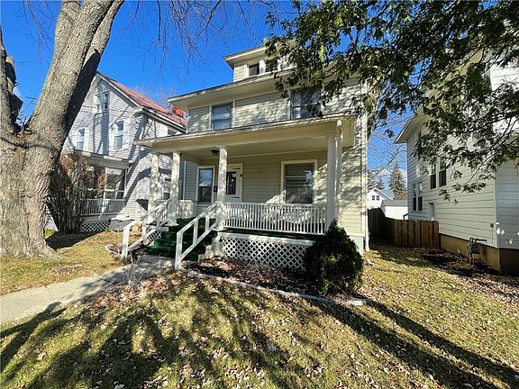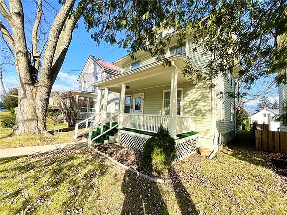 Charming 4 bedroom home close to HWS College, Wegmans, parks and private back driveway off of Cross Street that leads to spacious parking in back yard (easement for neighbor). This home features hardwood floors throughout with welcoming foyer upon entry, good size living room and formal dining room. Fully equipped Granite countered "eat-in" kitchen with ceramic flooring, newer cabinetry, sink & appliances. Convenient powder room on first floor along with enclosed back porch leading out to backyard and large parking area. Second floor offers generous landing with built-ins, 4 bedrooms, all with closets, full updated bath w/storage and stairway access to full attic. This lovely home boasts a nice covered open Front Porch for lounging & relaxing! Updates: New gutters=7 yrs., Roof (complete tear off)=7 yrs., crown molding 1st floor = 8 yrs., Furnace & hot water tank=8 yrs., refinished floors=8 yrs., Updated & new electric wiring and hardwired smoke/carbon detectors= 2 Yrs. This home is Ready for New Owners Now!