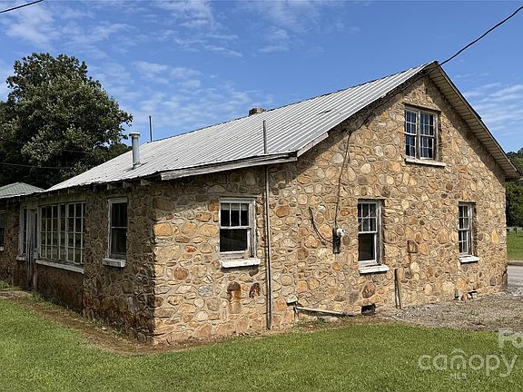 Stone buildingTwo extra roomsSolid river-rock exteriorPaved parkingCorner lotGrassy yardMetal roof