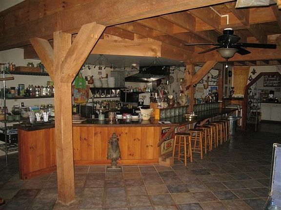 Many income possibilities! Property has been operated as a bed and breakfast for several years. The commercial kitchen has health dept approval for restaurant or could be a private kitchen for gourmet cook.Everything in kitchen stays except vintage refrigerators.This property has 4.85 acres of fields and streams that could be made into upscale RV park or campground.This is a very unique property that must be seen to be appreciated.