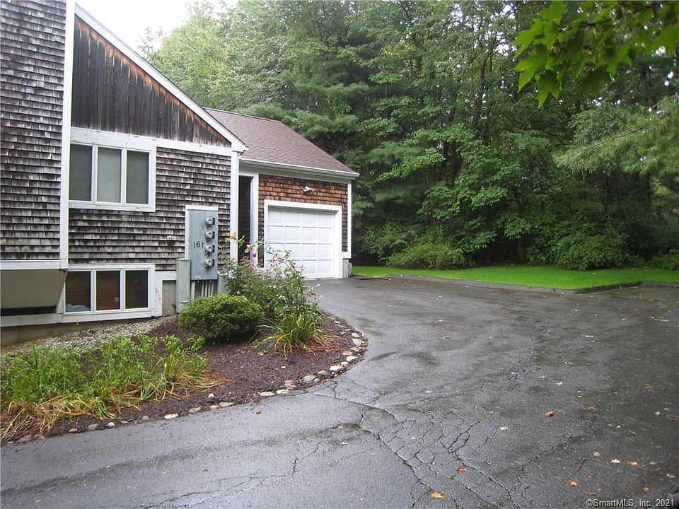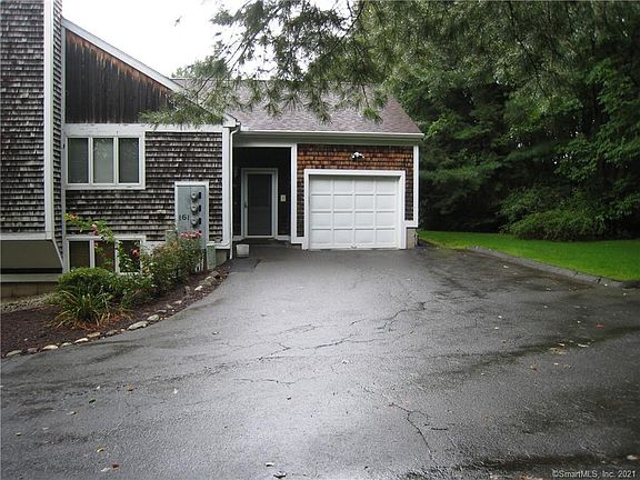Ranch style 3-bedroom, 2-full bath, end-unit, cul de sac condo with attached garage It has a spacious open floor plan and a vaulted ceiling. The open floor plan provides easy visibility of almost anywhere in the front rooms. Enjoy breakfast sitting at the kitchen island or in the dining room. The one-month-old central air conditioning system whose warranty transfers kept the house cool during the hot summer. The gas heat and wood fireplace keeps the unit warm in the winter. Heading down the hall behind the doors on one side are closets with wire shelving. On the other side of the hall is a full bath with a tub/shower. Tucked in this bathroom is the washer & dryer. The 3 doors at the end of the hall each lead into a bedroom. The Master Bedroom has a dresser built inside of the custom designed closets. Next to the sliding door is an additional 2-wide window, not found in many of the similar units. The full bath in the master has a convenient and spacious walk-in shower. The whole house surge protector provides protection for your electronics. The garage door can be controlled via its newer Wi-Fi enabled opener. The private driveway allows for ample parking of multiple cars. Later in the day relax on the private back deck or secluded grass area. Close to ESPN, UCONN, Raytheon, restaurants, shopping, medical and highways.