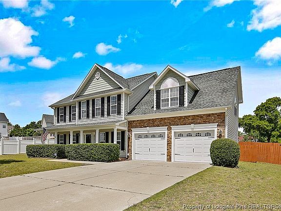 Spacious, well-maintained 3 bedroom, 2.5 bath home in Lillington's Woodshire subdivision. Easy commute to Fort Bragg Army base, Fayetteville, or Raliegh /Durham area. The home welcomes you w/ a covered front porch & a 2-story foyer upon entrance, offering an inviting space & lots of natural light. On the 1st floor you will find a beautiful, formal dining room w/ shoe, chair, & crown moldings, a tray ceiling & lots of natural light. Kitchen w/ 2 pantries, laundry room, half bath & living room w/ fireplace & new flooring all also located on 1st floor. All 3 bedrooms are on the 2nd floor in addition to a large bonus room w/ an additional room/space that juts off to the left, overlooking the front of the home. 2nd floor also offers the owner en suite with double vanity, garden tub, walk-in shower, water closet, and walk-in closet. Another full bathroom upstairs as well. Huge, fenced backyard w/ patio concrete pad off kitchen door for your patio furniture, and a firepit for entertaining!
