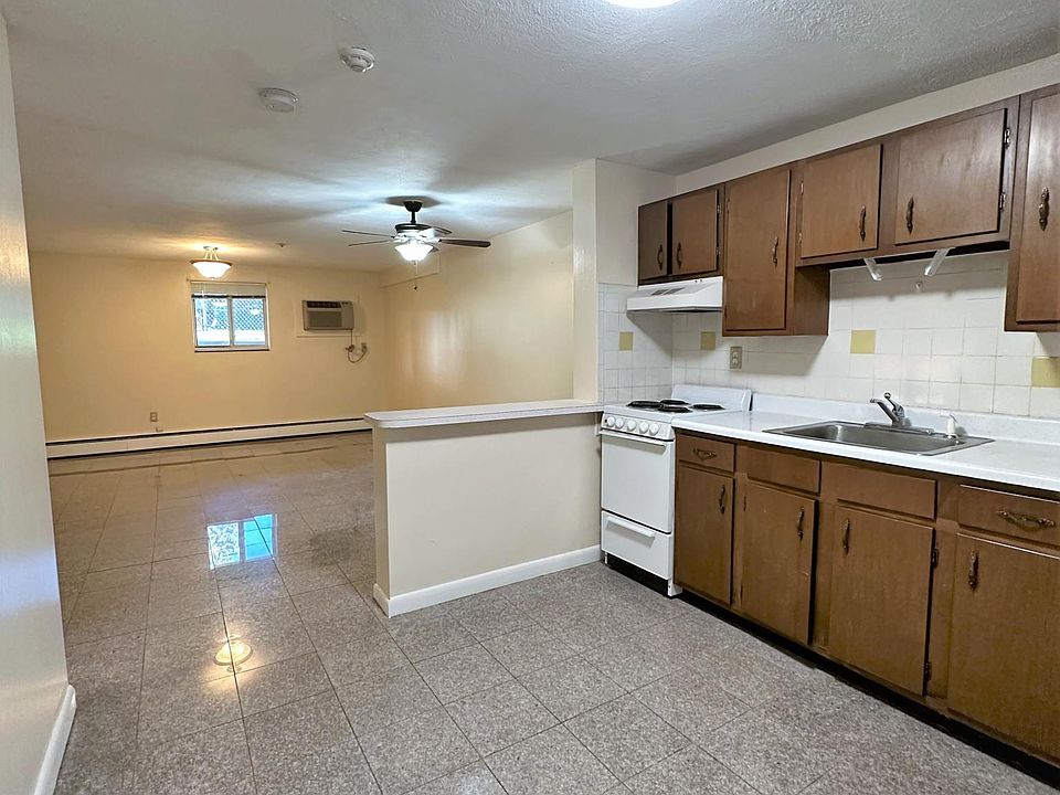 Beautiful 1 Bed/1 Bath Including Heat & Hot Water! Walk to Quincy Center Train! -1st Level Unit, Large in Sq. Footage. Tile Floor Throughout. -Open Kitchen w/Plenty of Cabinets & Counter Top Space, Stove & Refrigerator, and Breakfast Bar. -Spacious Open Living Area w/ Dining Area, Storage Closet, & In-Wall A/C Unit. -Huge Master Bedroom can easily fit a King Size Bed Set & More w/ Two Separate Closets! -Spacious Bathroom w/ Vanity, Full Size Bath Tub, Tile Back Splash, Medicine Cabinet and Linen Closet. -Laundry on Site. -Off Street Parking Included! -Heat & Hot Water Included! -Less than 5 Minutes to Quincy Center & the Redline Train Station! About a 15 Minute Walk to Train! -MBTA Bus Stop at the end of the Street for Public Transportation. -Walking Distance to Many Great Restaurants, Shops, Grocery Stores, Shopping Plazas, and much more!