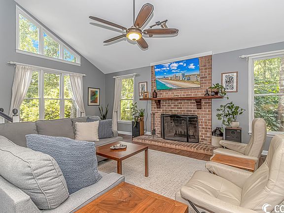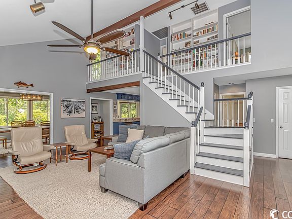 Charm, Privacy and Coastal Living await at 41 Sparkleberry Pl. Located at the end of a quiet cul-d-sac in the highly sought after Litchfield Country Club; this location stands out against the crowd. The large lot and nature-esque setting combined with easy access to Litchfield Beaches will have you poised to be living your best life in no time. This ideal setting is further enhanced by the home itself. Inside you will be welcomed by a host of features that will make you proud to call this house your home. Featuring a "true" great room with high ceilings, that is hallmarked by a fireplace, and over looked by a 2nd floor "cat walk" this space is both welcoming and functional. Inside the kitchen you will enjoy a very useful layout with stainless steel appliances, solid surface countertops and tile backsplash. The dining room has an abundance of windows and natural light and overlooks the expansive and private backyard setting. Upstairs you will be greeted by charming built in book cases, new hardwood floors and 2 bedrooms with their own updated bathroom. The upstairs also has access to the outside via a 1st floor rooftop balcony. Given the interior and exterior character, charm and location of this property, you will be delighted to call it your home