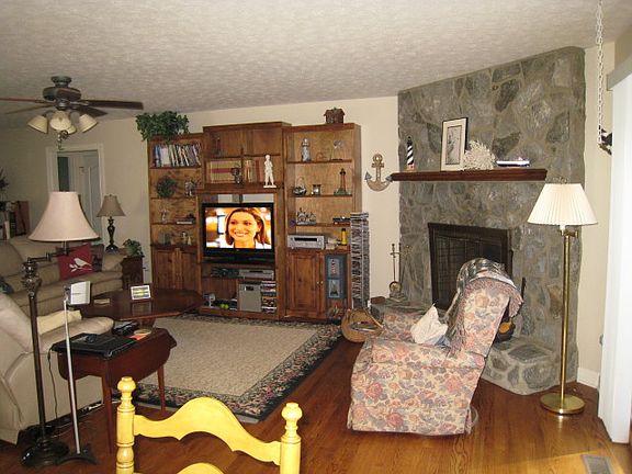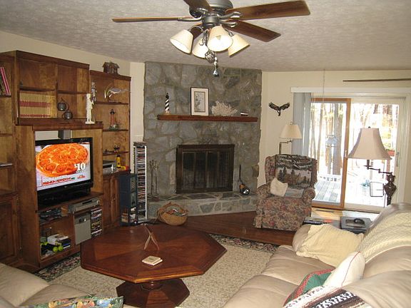 REDUCED...Awsome Sunset View From the Deck.....Close to the water with a big water view. Boat dock in place. Detached 28x32 building with 11'10" high door opening for your tower boat or fixed top pontoon boat. Concrete floor storage area under the house for lawn mowers & water toys. Oak hardwood floors, stone fireplace & open floorplan. Large deck for entertaining. A MUST SEE.