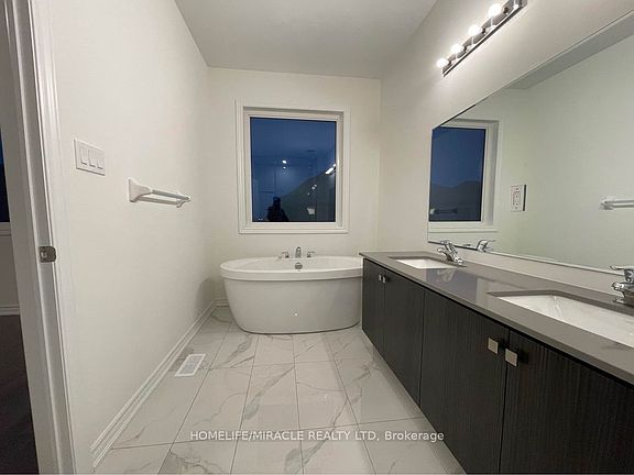 Beautiful 3 years old property with 9 ft ceilings, modern fireplace and open concept family room. THREE FULL WASHROOMS on the upper floor, a rare find in semis and is 2140 Sqft per builder. A school is planned in the neighbourhood as per the builder's site plan and will be at a walkable distance from this property. Separate Entrance by Builder. The property is spacious with large 4 bedrooms and spend 75k on upgrades, Richly Stained Staircase, A Gorgeous Kitchen With Modern Finishes, Large Island, Stainless Steel Appliances. Large Master Bedroom With Walk-In Closet & 5 Pc Ensuite. Lots Of Windows For Natural Sunlight. Large Windows & Blinds are installed in rich color matching the walls..and New Central AC installed(May 2023).Utilities Extra 70 % if basement rented .