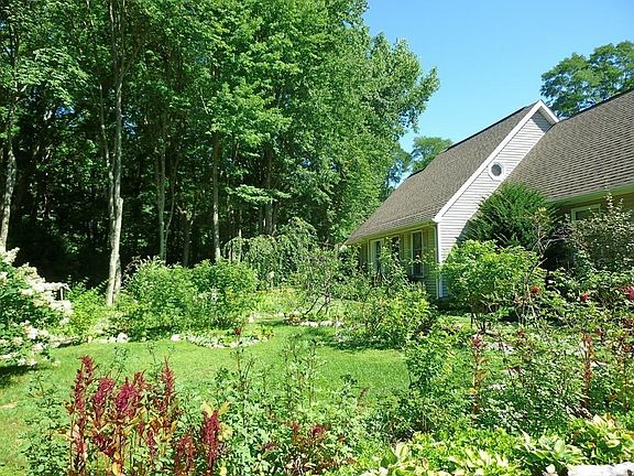 Serenity abounds in this four bedroom cape on an acre lot in an established neighborhood. Living room with oak floors; french doors in dining room lead to a Goshen stone patio and wall overlooking the back yard gardens and the apple and pear trees. First floor master bedroom with connected bath, three bedrooms on the 2nd floor with a full bath featuring double sinks. Playroom in the basement as well as workshop space. Oversized attached 2 car garage offers extra storage. Gas heat and hot water. 1st showings at the open house on Sunday, August 28th from 12-2.