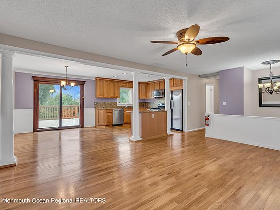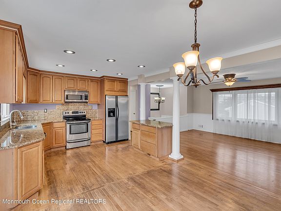 BOM-QUICK SALE-Don't miss out on this lovely Bilevel home located on the corner of a quiet street in a desirable neighborhood of Beachwood! Newer kitchen with stainless steel appliances, granite countertops, opens to a large Dining and Living room. Off the Dining room are sliders that lead to your large deck overlooking the above ground pool with a fully fenced yard. There are 4 Bedrooms-all have double closets, 2 full baths and hardwood flooring is throughout the main level of the home. Cozy family room with sliders that leads to an enclosed sun room and then out to your exterior patio. Solar panels installed to reduce utility costs. Close to major highways, shopping, beaches, excellent schools.
