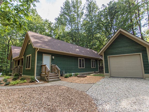 One level living, 1 acre parcel, 1 hour to Chicago by train or interstate, & checks all the boxes.. 2+ bedrooms, 2 baths,large master suite, new rear deck with room for dining, lounging & hot tub, detached garage, vaulted great room, stone hearth fireplace, stainless/granite kitchen, screen porch,community pool/tennis/basketball. Just minutes to South Shore commuter train, Lake Michigan beaches, and easy access to interstates. Just off H 212 between Michigan City and New Buffalo turn at Shady Creek Winery on Tryon and look for the Woodlands on left.
