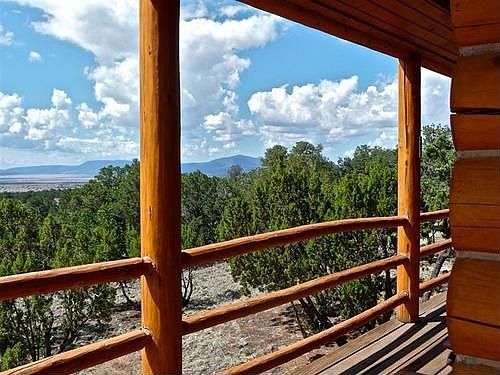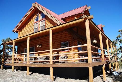 Move-in ready! Fully furnished incl. 2006 4x4 et. cab F-150 pick up truck! Walk into this impeccable log home and you'll think you are entering a mountain lodge. 8-10 logs and beams, grand log staircase, pine floors, pantry, open plan kitchen-dining-living, MBR, full MBA + 1/2 bath are all downstairs, Guest BR, 3/4 bath and huge study/living area with open area view upstairs.LR sandst.fp with built-in wood stove, 8-ft porch on 3 sides, grand views.2car garage, 1br studio/guest house. Add Lot60too!