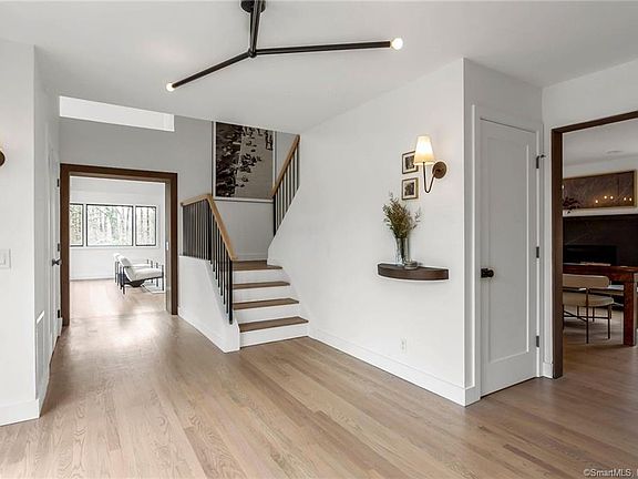 This 4BR fully remodeled 2022 property sits in the heart of Greenwich at the end of a quiet cul-de-sac in the coveted North Street school district. This contemporary home features clean lines with spacious rooms, vaulted ceilings, and skylights throughout. Enjoy nearly an entire first floor of living space with indoor-outdoor flow to the large wrap around deck with private wooded views. The first floor offers open living spaces and a gourmet kitchen. A large home office/library can function as an additional flex or guest space. The master suite is an oasis with a fireplace, sitting area, huge walk-in closet with his/hers spaces, and oversized spa bathroom with Juliet balcony. 2 bedrooms with a Jack and Jill bathroom and an additional large en-suite bed/bath complete the 2nd floor