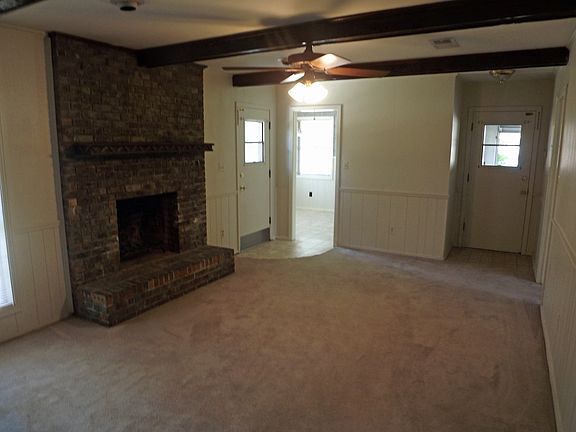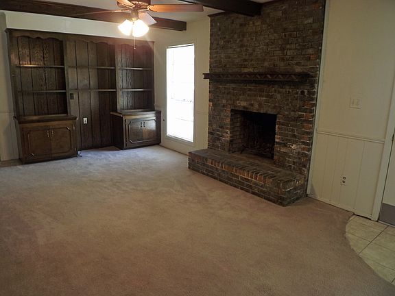 REDUCED BY 8000.00!Looking for a great location, large back yard, storage building and a formal plan? How about a cozy den with a fireplace, a large master that has entrance on to the patio? Then this is it!! Side entry garage, large kitchen with dining area surrounded by windows for a view of your beautiful back yard. Two new French drains and gutters added. Sod has been laid where the French drains were put in. House has been repainted on the inside. Fireplace has been painted, even the mantle. Built-ins in den give you a place to display your pictures and personal treasures. Master bathroom has walk in shower and large vanity. Hall bathroom has a wall of cabinets for storage. Pull down attic and storage room in garage. Large window in formal living/dining combo, so much natural lighting throughout this home. Formal entryway. Three entrances from the backyard into your home, one into the laundry room, one going into the den, and one into the master. So much work is being done on this home. Don't wait until the work is all done, the home will be gone by then. Large, mature trees in the yard make for great shade. Limbs have been trimmed back in the necessary places and the roof was replaced within the last few years. This house is being freshened up all the way through. All new carpet has been installed . Call your agent today for appointment!!