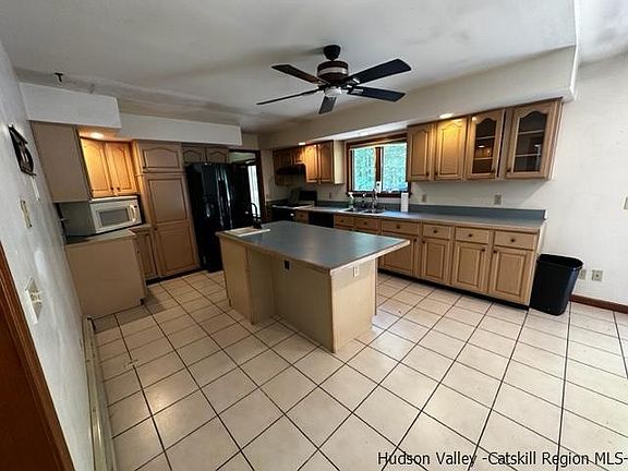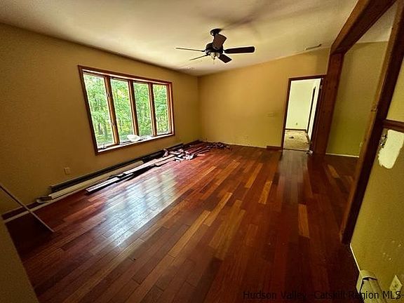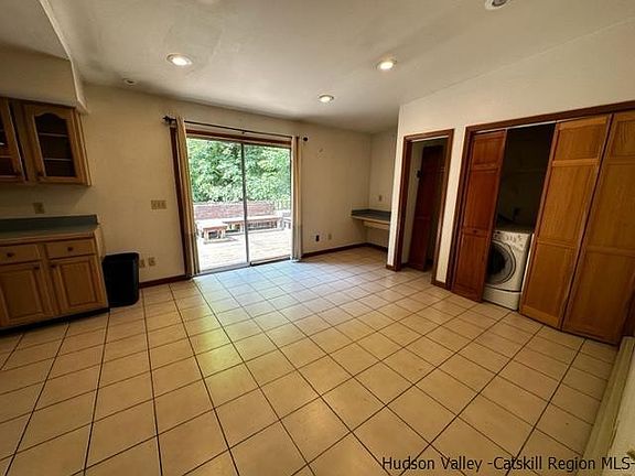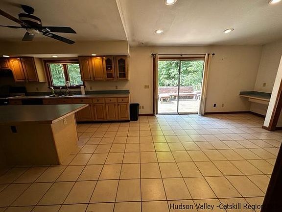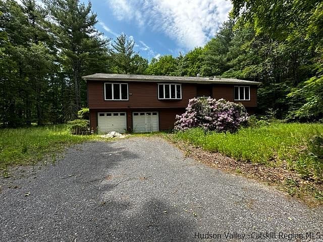Very large split level on a 2 acre lot in a quiet area of catskill, this house is surrounded by trees and has a private setting. All rooms are extra large and kitchen is spacious with an eat in kitchen area and water closet with washer & dryer. House has master bedroom on one side with the other bedroom on the other side and one bedroom on the lower level. The downstairs was wired up for tv and sound and has its own full bathroom and walkout with access to the 2 car garage.