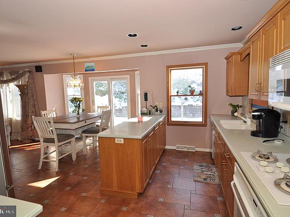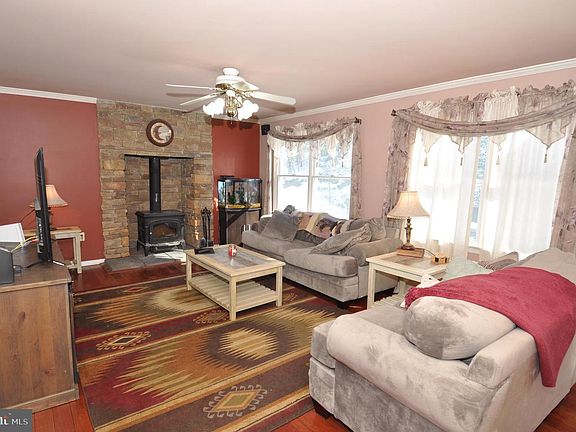 Custom-built chalet style Colonial located in the hillside of North Hanover Township. This home features a versatile floor plan and surprises throughout offering 3256 SQ FT of living space with 3 to 4 bedrooms and 3.5 baths. The first floor offers a full eat-in kitchen with an appliance package, breakfast room with bay window, dining room, and attached family room with a wood stove for those cold evenings. One of the bedrooms is located on the first floor with a handicapped built walk-in shower which can be very appealing for multi-generational living. The second floor offers a master suite with walk-in closets, 2 sided fireplace, and a master bath along with an additional bedroom and bath. A multi-purpose bonus room with many uses is located above the garage featuring a wood stove, Brazilian cherry floors, and ceiling fans. The yard is private with beautiful views of wooded areas. An elongated deck with a covered area offers access to the first-floor bedroom. Amenities include Brazilian wood flooring, woodstove, 2 sided fireplace, deck, central vacuum, full basement, and 2 car garage.