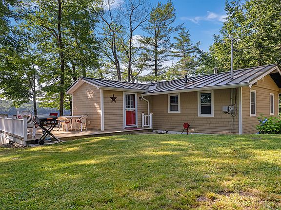 You'll never want to leave this storybook-adorable year-round cottage on Dyer Long Pond. This is where memories are made. The yard is beautifully landscaped with perennials and blooming bushes, keeping it low-maintenance so you have more time to play or just relax. The large wraparound deck, lakeside patio and 44-foot aluminum dock provide great spaces for hanging out or entertaining. Audubon Bird Sanctuary is accessible from the lake, and so is the best fishing around! The private road is plowed year-round, so plan for some winter sports and ice fishing. You can watch it all from the insulated sun porch, benefitting from passive solar heating in the colder months. The oversized two-car garage has the potential to double as extra bunk space if needed. Plenty of extra parking area for boats, RVs, etc. Cottage is being sold furnished. Don't let this one slip away!