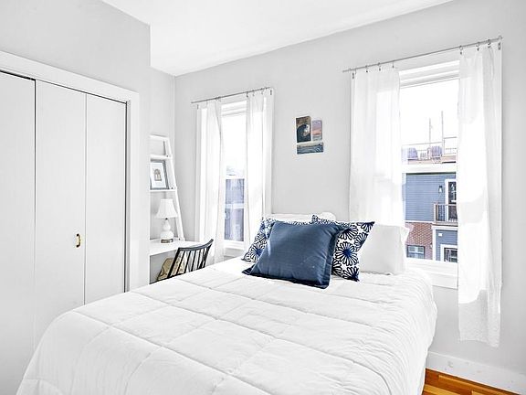 This 2-bedroom penthouse is very charming, offering every conceivable amenity and architectural detail: high ceilings, fireplace, newly-updated bathroom, and both a private porch AND a spacious roof deck with ocean views. Located in a classic red-brick rowhouse in Southie's City Point, just 3 blocks to both M Street Beach and the Causeway, this building has been very well cared for with low turnover and a large repointing project recently completed on the exterior. The floor-through layout, as well as numerous skylights, drench the unit in sunlight from the north, south, and west.. Recessed lighting, hardwood floors, in-unit laundry, basement storage, and built-in shelving throughout the unit, as well as numerous other features, truly make this gem a one-of-a-kind, move-in ready home in the heart of a thriving neighborhood.