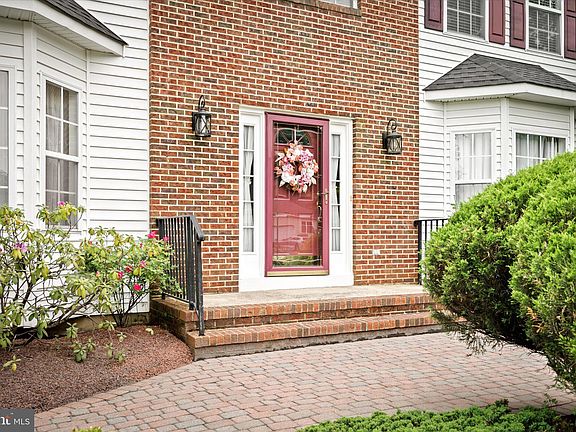 Discover this exquisite Partial Brick Front 4-bedroom, 2.5-bathroom colonial nestled in Robbinsville’s sought-after Country Meadows community at the end of Tanager Lane. This Clover model is situated on a premium lot with a private backyard that borders a serene wooded area, offering both seclusion and beauty. As you approach the house along the EP Henry paver walkway and step inside, you'll be greeted with beautiful American Heritage hardwood flooring on the first level along with 9 foot ceilings extending through the family room, kitchen, hallways, and powder room. Adding a touch of sophistication, the formal living and dining rooms are adorned with elegant crown molding, wainscoting, and a traditional Lenox chandelier with a ceiling medallion, as well as custom built-in bookcases in the living room. The kitchen, a centerpiece of this home, features stunning granite countertops, a multi-faceted stone tile backsplash with copper accents, and matching copper double sinks. The spacious breakfast bar, complete with recessed lighting, seats three comfortably. The oak cabinets boast crown molding, copper knobs, under-cabinet lighting, and a custom-built wine rack and side shelf. Newly installed LG stainless-steel appliances, including a smart stovetop and microwave connected to the ThinQ app, make meal preparation a breeze. Adjacent to the kitchen is the cozy family room with custom sheer shades, and just steps away, a convenient powder room and laundry room equipped with an LG washer and dryer, custom folding shelf, and overhead storage. The home office, filled with natural light from a large window, provides a perfect space for remote work. From the kitchen, French doors open to an EP Henry two tier stone patio, ideal for morning coffee or entertaining. The backyard is a botanical paradise with Japanese maples, magnolia trees, crape myrtles, and daffodils. The upper-level patio features a built-in natural gas BBQ grill, encased in stone with a large granite countertop and bar stools, perfect for outdoor dining. The custom-built playhouse, covered with English ivy, and a matching shed offer additional charm and functionality. Upstairs, the four spacious bedrooms are newly carpeted. The primary suite includes a ceiling fan, large walk-in closet, jacuzzi bath, new bathroom vanity with a granite top, and renovated ceramic tile flooring. Each additional bedroom has beautiful views, ceiling fans, large closets, and neutral wall-to-wall carpeting. The shared bathroom also features a renovated granite countertop with double sinks. The fully finished basement, with tiled flooring, is divided into multiple functional spaces. Enjoy a media room with a 102-inch projection television and built-in surround-sound speakers, a game room with table games like ping pong and air hockey, a personal gym area, and an enclosed storage area. Meticulously maintained by the original owners for 25 years, this home boasts recent updates such as a new roof and gutters, HVAC system, freshly painted first level, and refinished hardwood flooring. Additional features include a gas fireplace insert, 2-car attached garage, vinyl siding, and a paver walkway. Conveniently located minutes from Middle and High Schools, Tantum Park, Tommy May Trail and NJ Premier Mercer County park. In addition, a short drive to all major highways 95/295/NJ Turnpike Route 1, Hamilton and Princeton Junction Train Station and much more. Schedule your preview today for this beautiful house that will not last!