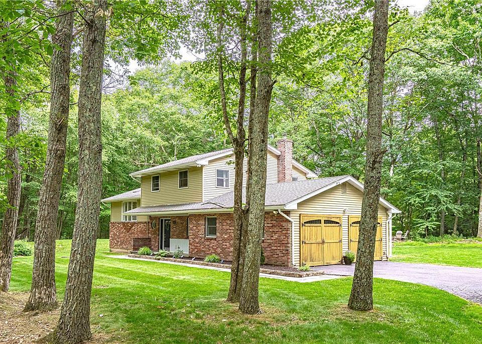 **HIGHEST AND BEST OFFERS DUE BY 5PM TUES - JUNE 18TH!***Peace and serenity await you on this lovely 1.03 acre property surrounded by lush towering trees. While tucked away in this private-feeling neighborhood on a cul-de-sac, the 4 bedroom, 2 full bath updated split level is less than 20 minutes from Camelback, Kalahari Resorts, and Great Wolf Lodge! The home's layout works well for extended family or guests - with a first floor bedroom option and updated full bath. Enjoy a cozy wood fire in the living room during colder months, or take in the outdoor views from the 3-season sunroom - both found on the first floor. A wide hardwood staircase leads you from the living room up to a spacious, bright kitchen and family room with vaulted ceiling. The open updated kitchen is dressed to impressed with a brick backsplash, granite counters, custom cabinetry and convenient island with seating. A deck off the kitchen makes connecting with guests at the backyard firepit a breeze as you grill and entertain. The large yard lends itself to outdoor enjoyment, with ample areas for games and family fun. With 3 additional bedrooms and another full bath upstairs - plus a spacious finished basement - you'll have all the space you need! For an added bonus, the 2 car garage is insulated and heated - and would make a fabulous game room, home gym, or a warm place for tinkering in your workshop. This home has a lot to offer, and just may be the retreat you've been dreaming about!