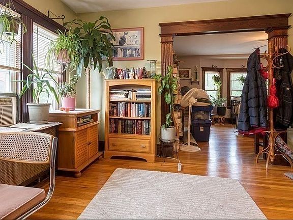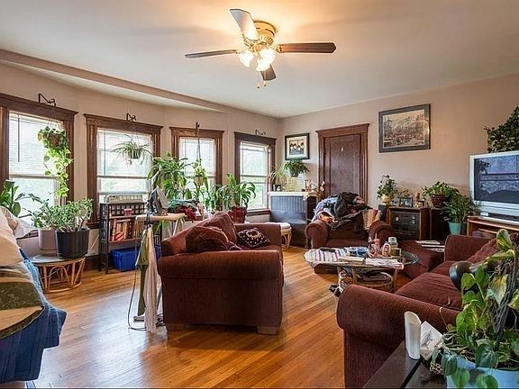This charming unit is located on the top floor of a 3 family home and boasts hardwood floors, high ceilings, a den and a living room with large windows that allow in an abundance of natural light. The eat in kitchen has plenty of cabinets, a gas range and dishwasher. Additionally there are 2 good sized bedrooms with big windows and closets, a full bath with tub, shower combo and a private deck Laundry in building Pets negotiable Street parking Located just a 7 min walk from Gilman Sq and close to many shops, markets, restaurants parks and more Available 9/1 1 year