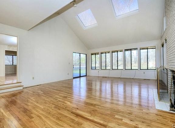 Beautifully remodeled and carefully maintained, this sunfilled Colonial with a modern influence is set on two acres of beautiful level land in a desirable neighborhood. The gracious entry foyer leads to a dramatic LR w/ vltd ceil, many windows, skylights, doors to large deck & the first of two fireplaces. The oversized formal dining room is the ideal setting for memorable gatherings. Newer eat-in-kitchen opens to the spacious fam rm w/ fpl: tastefully updated w/ custom cabinetry, granite counters, stainless steel appliances, sunny breakfast room and a very large pantry. Flexible layout,... the first of 5 bedrooms is located on the main level with private full bath. Wonderful master suite w/ sep den. 3.5 baths updated w/ granite.