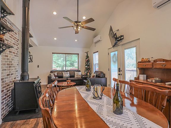 A Mountain Dream Home, complete remodel with high grade waterproof laminate wood flooring, tile flooring in bathrooms. Ceiling fans, special Prime air and heat remote control in all bedrooms. TV's in every room. Kitchen with granite counter tops and upgraded appliances. All new stucco on the outside for no maintenance. Move in ready as most furnishings will convey with acceptable offer. Make this your home. Property includes 3.4 acres of unrestricted land with barn, stalls and pipe horse fence. Sit on the large deck and enjoy views of forest and wildlife. Don't miss out on this one of a kind property.