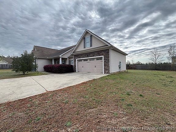 This home was built in 2011, the Sunflower II plan situated on a cul-de-sac features 3-Bedrooms and 2-Bathrooms and an unfinished bonus room over the garage. Upon entry there are hardwoods in foyer, carpet through the living room, bedrooms, and hallway. 9' ceilings, kitchen with staggered cabinets, laminate counters, stainless steel appliances and vinyl floor. The primary bedroom has an en-suite bathroom with a garden tub for soaking. The exterior features stone veneer accents on the double car garage, vinyl siding, and a rear patio with a large yard. Water heater replaced in 2023.