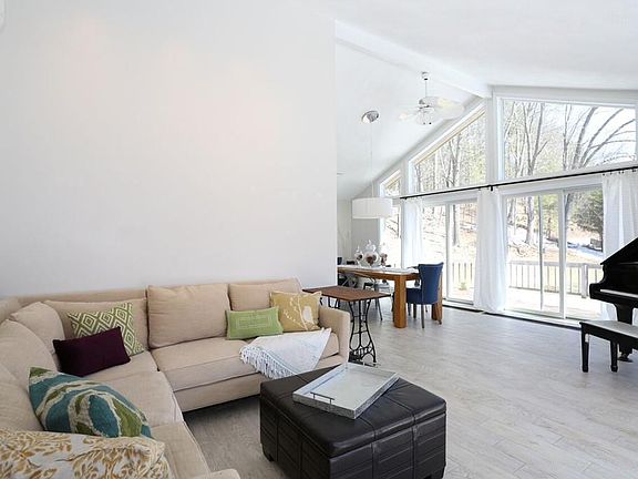 This one of a kind rustic contemporary home is now available in a serene setting in sought after Southborough 30 minutes from Boston. Inside you will find all of the desired modern amenities: an updated kitchen with a soaring vaulted ceiling, hardwood maple espresso cabinetry, rich tiger wood flooring underfoot, stainless appliances featuring a built-in 6 burner AGA oven surrounded by gorgeous stonework. The family room is open to the kitchen with cathedral ceilings, a floor to ceiling stone fireplace with new Enviro wood burning stove. The spectacular open living and dining rooms feature white wood tile flooring, lots of glass and amazing views. The master bedroom has a balcony, walk in closet and updated private bath. Laundry conveniently located on 2nd floor. There is plenty of space in the lower level including an office, guest room, bath and media room that walks out to the private acre+ lot. Updates include new roof, sliders, bluestone patio, retaining walls, paint, flooring.