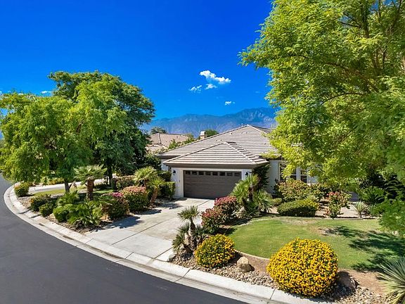 BACK ON MARKET - BUYER UNABLE TO PERFORM. HOME INSPECTION COMPLETED. Customized Contessa floor plan with breathtaking mountain views in Mira Vista Mission Hills. Offering approximately 2,933sf with main home featuring 3 bed / 2.5 baths and a unique casita complete with 2 rooms, full bath, kitchenette, and separate entrance. The home is newly renovated throughout with a stunning kitchen, soaring ceilings, and mountain views as you look over the massive backyard and the 9th fairway of the Gary Player golf course. The outdoor living and entertaining space features an oversized pool and spa, built-in BBQ, pergola shade area, automatic retractable awning, multiple seating areas and a 6 hole putting green with built-in sand trap. You ask if it gets any better... the south side yard features a full orchard of loaded fruit trees! You will enjoy low HOA fees (cable and internet included) while living central to all that the Coachella Valley has to offer: Easy access to downtown Palm Springs / airport, minutes to the Living Desert Zoo, El Paseo shopping district, and everything the valley has to offer.