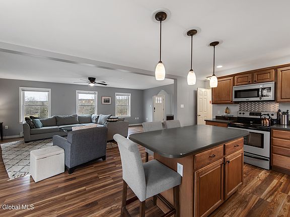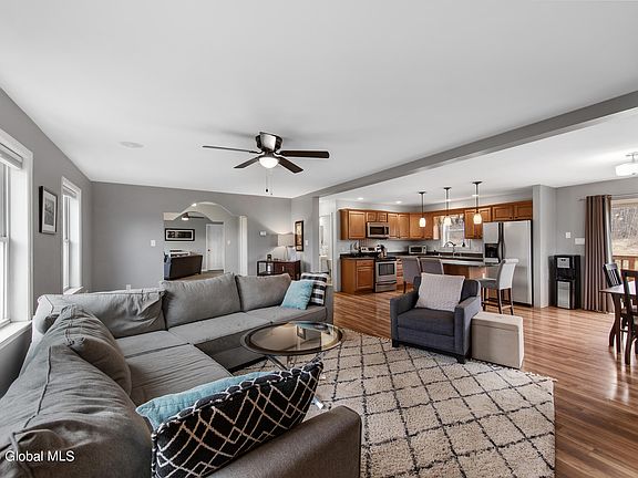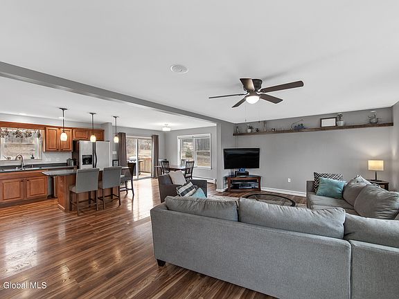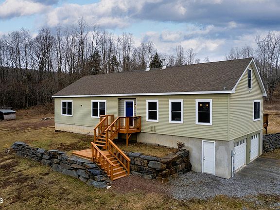 Want to live on your own nature preserve? Bring your walking shoes & check out this customized 3-bedroom/ 3-bathroom super ranch on 5 private acres in Rensselaerville. Open floor plan for easy living. Wonderful finishes inc. ceramic tile & laminate floors, modern kitchen w. center island, pendant lights, foyer entry w/ great closet space. Double garage & lower level workspace roughed in for 2 add'l bedrooms. Starlink internet that is transferable to the new owner. Rear deck overlooks your outdoor playland w. walk paths, camping spots and access to 10 Mile Creek. A treasure in the woods!